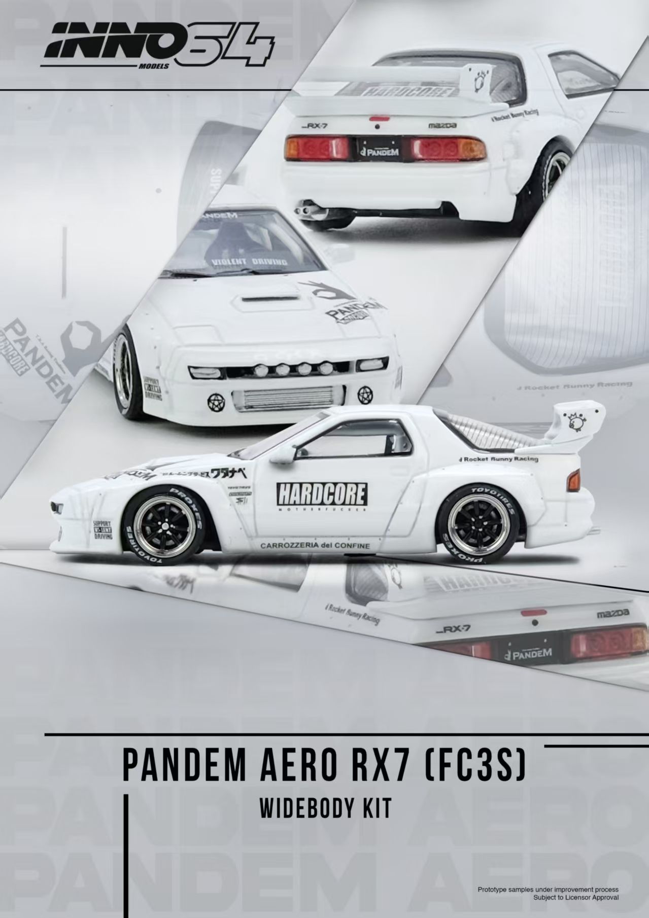 1:64 scale Mazda FC RX-7 capturing the second-generation coupe’s pop-up headlights and smooth body lines. Inno Models crafts the die-cast replica with precise bodywork and authentic colours.